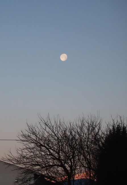 旧暦では「月の満ち欠けの周期」を基本に太陽の動きを組み合わせて暦を作っています。満月に近い今朝は、月周期のほぼ中間の日(15日前後)です。